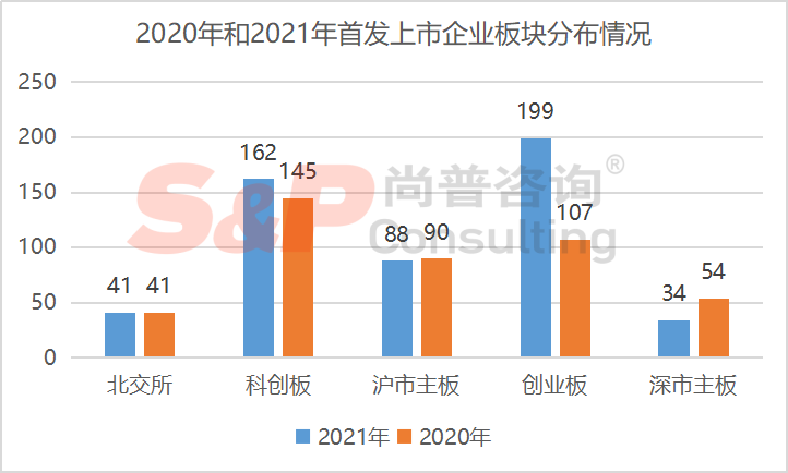 2021年全年A股首发上市企业合计达524家,其中核准制下上市企业合计122家(沪市主板88家、深市主板34家),科创板、创业板上市企业分别为162家和199家,北交所上市企业41家。