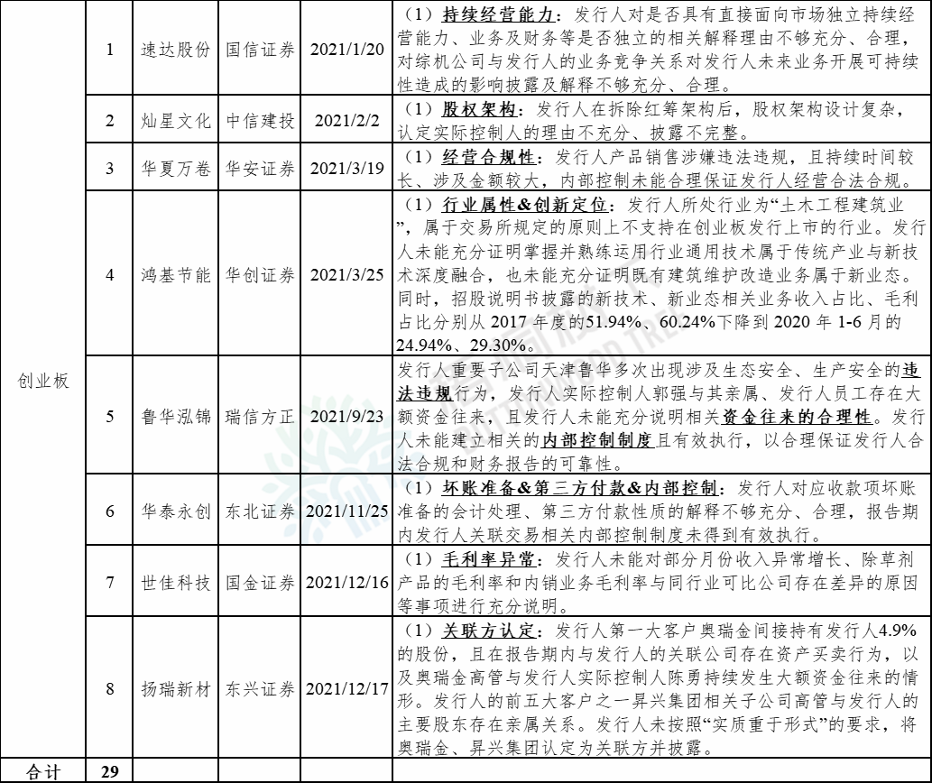 2021年被否企业共29家,其中创业板8家,科创板8家、沪市主板7家,深市主板6家。