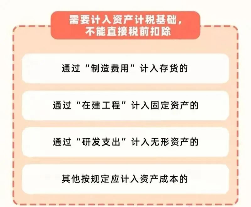 (3)需要计入资产计税基础,不能直接税前扣除。